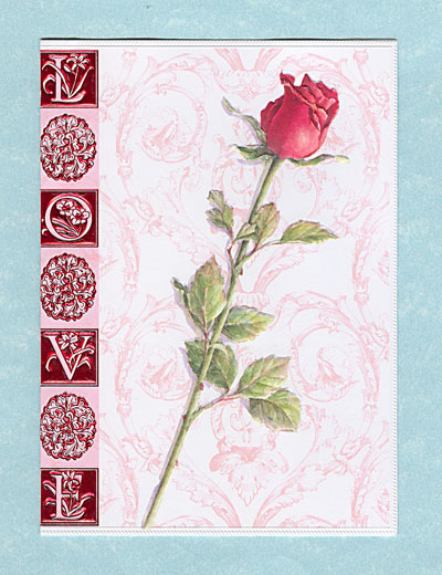 Dubbelvikt kort med spetsdekorerad kuvert.