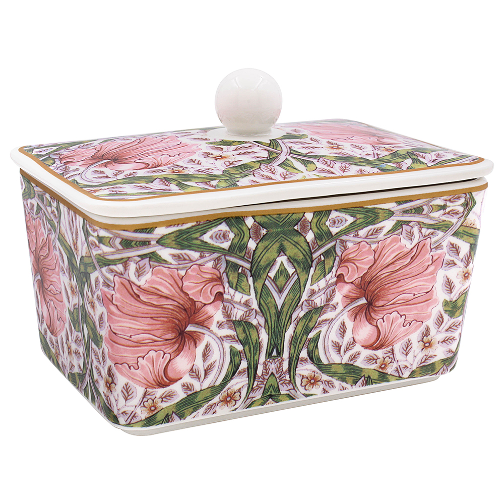 Brittisk smörbytta i porslin i William Morris populära mönster Red Strawberry Thief. Smörbyttan rymmer ca 250-300 gram smör och är ett dekorativt sätt att servera smör på bordet!